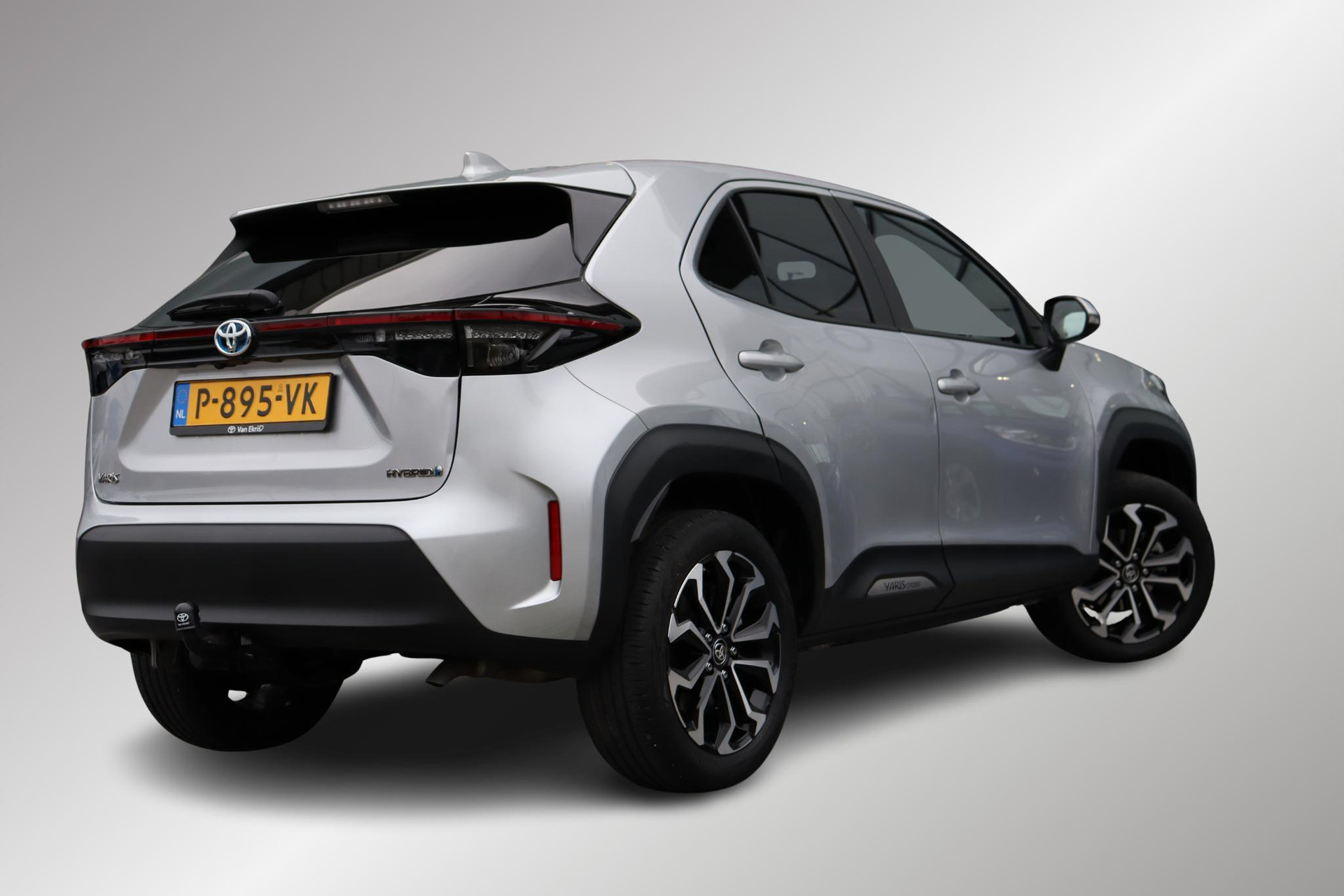 Yaris cross 1.5 Hybride Dynamic in de kleur Shimmering  silver is uitgevoerd met, Smart key, Climaatbeheersing, Getinte ramen, Achterruitrijcamera, Draadloze Apple Carplay / Android auto, Keyless Entry, DAB Radio, Trekhaak met geremd 750 kg en ongeremd 550, En nog veel meer!