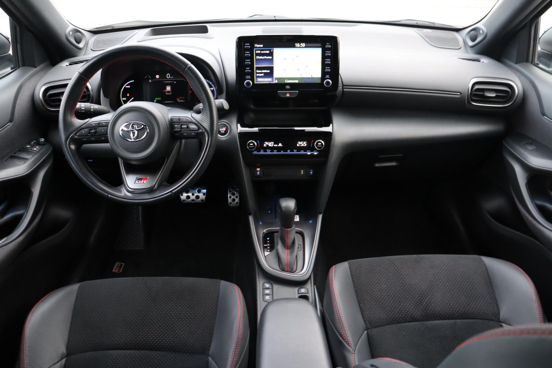 Nu bij ons in de showroom een Toyota Yaris cross 1.5 Hybrid GR Sport in de prachtige kleur, Dynamic Grey Metallic met een zwart dak. Deze Yaris cross is sportief uitgerust en neemt een hoop leuke snufjes met zich mee! Zo heeft deze Yaris Cross GR een head up display, JBL Audio, parkeercamera, Apple Carplay / android auto, Blind spot monitor, 360 graden camera, adaptieve cruise control, speed limiter en nog veel meer!