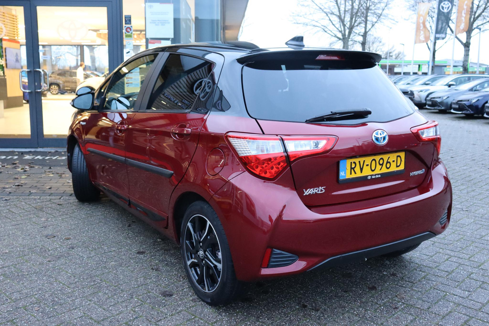Opvallende Yaris 1.5 Hybrid Bi-Tone in de kleur "Lava Red" metallic. De auto is dealer onderhouden en voorzien van onder andere: 16" inch lichtmetalen velgen, achteruitrijcamera, Cruise Control, Climate Control, Toyota Safety Sense, achteruitrijcamera, bluetooth, radio en nog veel meer!