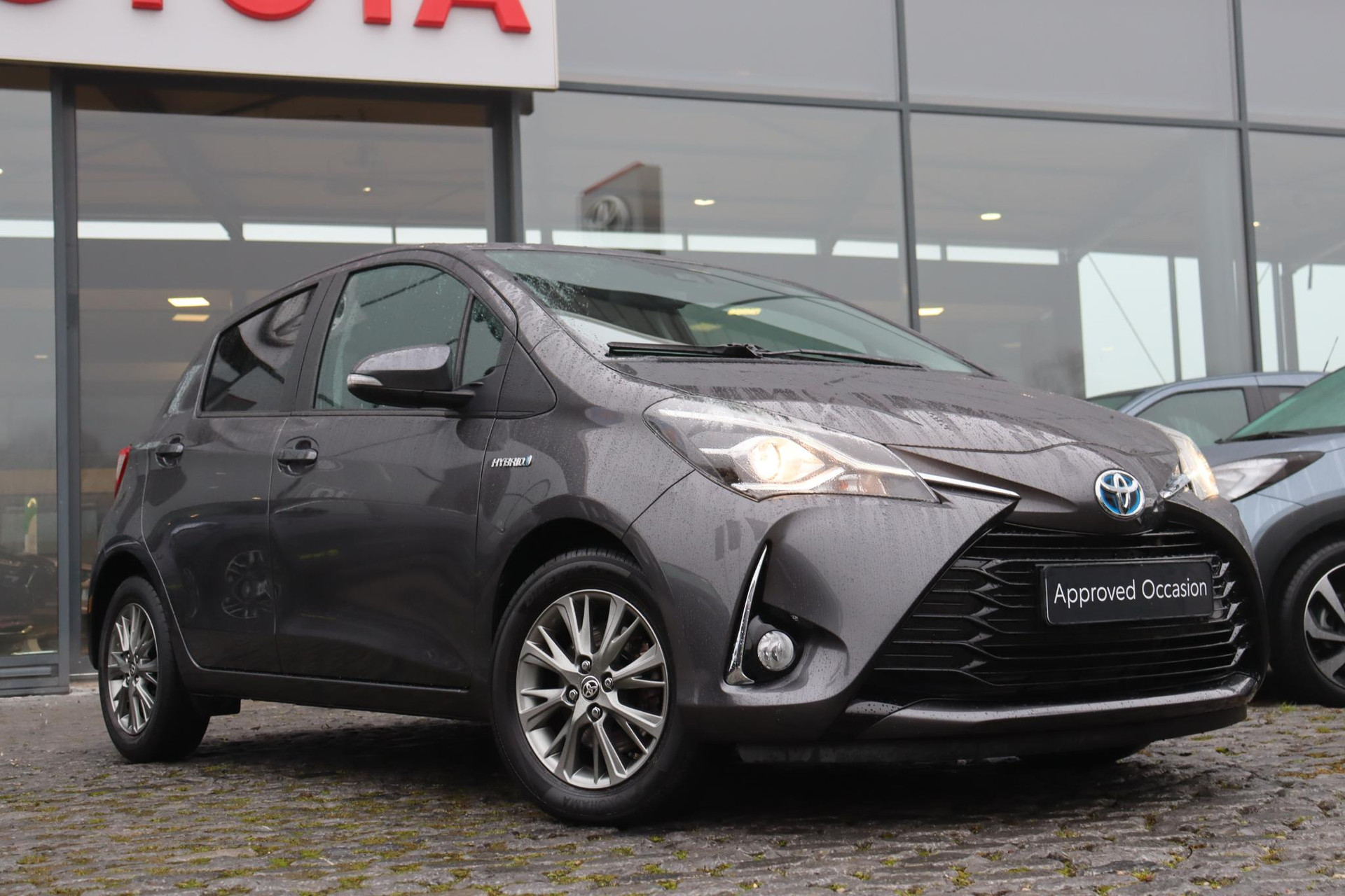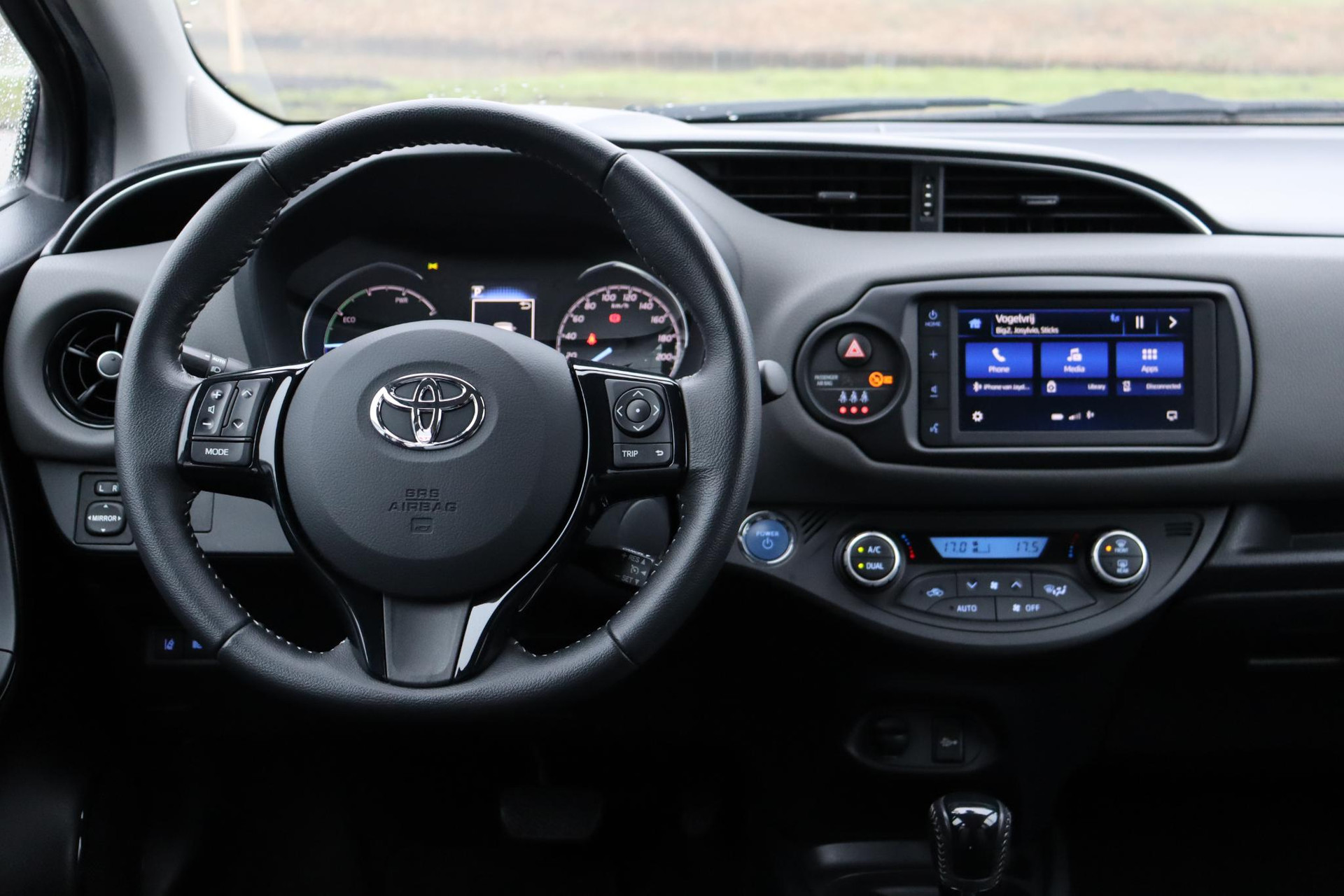 Bij ons in de showroom. Deze prachtige Yaris 1.5 Hybrid Dynamic in de kleur Ash Grey Metallic! Deze Yaris is nieuw door ons geleverd en altijd netjes in onderhoud geweest! Deze Yaris staat op prachtige 15" Lichtmetalen velgen en is erg rijk uitgerust. Zo heeft deze Yaris Bluetooth telefoon verbinding, Keyless entry met startknop, Privacy glas achter, Climate control, Cruise control, automatische verlichting en ruitenwissers, pre collision warning en nog veel meer!